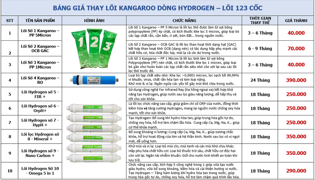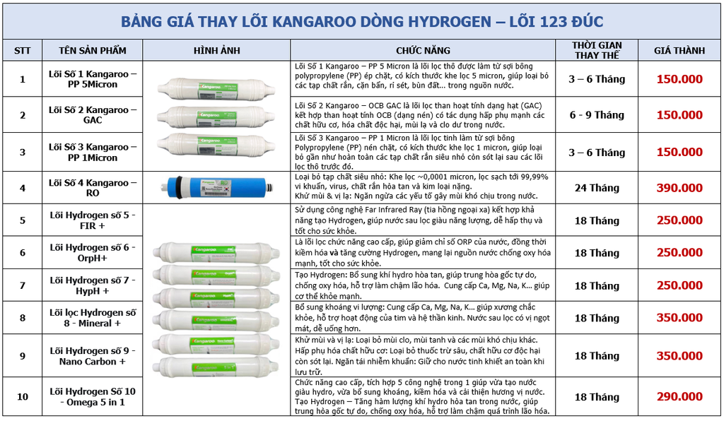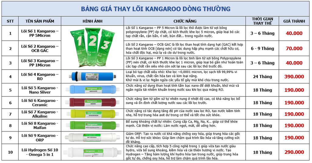Máy lọc nước Kangaroo có các lõi lọc, nhưng không phải ai cũng hiểu rõ được chức năng và thời gian thay thế của từng lõi lọc. Để thuận tiện hơn trong quá trình sử dụng, giúp kéo dài tuổi thọ máy cũng như đảm bảo cung cấp nguồn nước tính khiết có lợi cho sức khỏe người dùng.