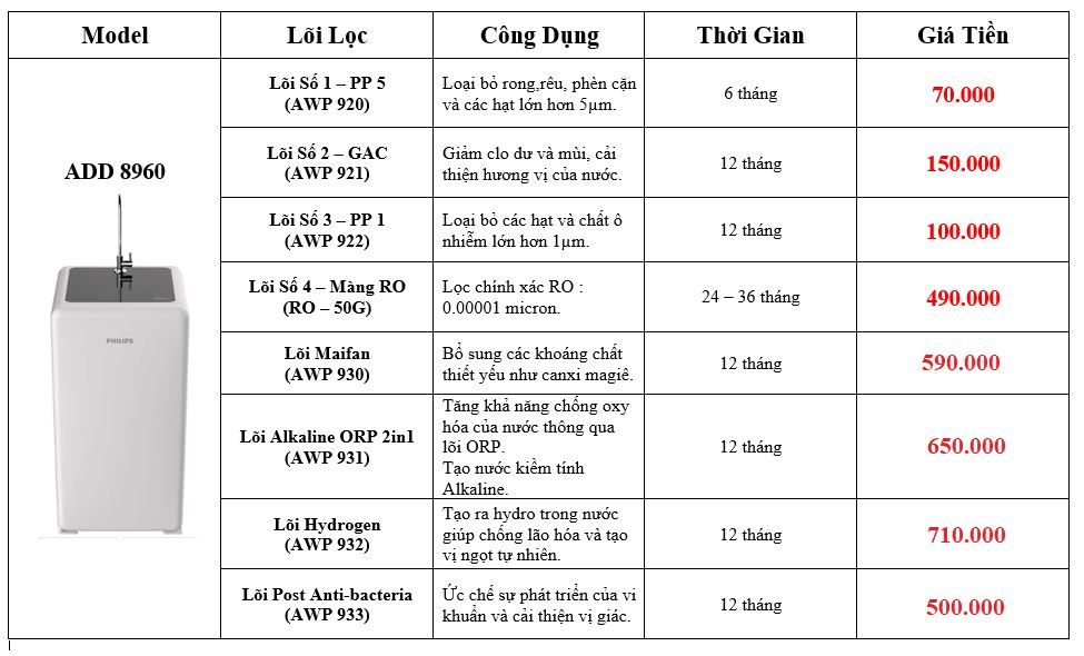Nguồn nước sinh hoạt hiện nay tiềm ẩn nhiều nguy cơ từ vi khuẩn, kim loại nặng đến hóa chất độc hại. Chính vì vậy, việc thay lõi lọc định kỳ cho máy lọc nước là vô cùng quan trọng để duy trì chất lượng nước đầu ra. Bộ lõi lọc Philips ADD8960 với hệ thống 8 cấp lọc tiên tiến không chỉ loại bỏ tạp chất mà còn bổ sung khoáng chất, giúp nước sạch hơn, ngon hơn và tốt cho sức khỏe.