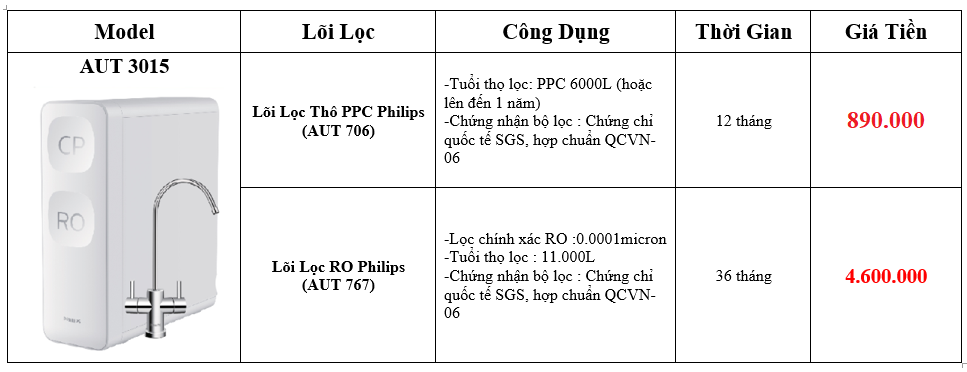 Máy lọc nước Philips AUT3015 được trang bị hệ thống lõi lọc chất lượng cao, mang đến nguồn nước tinh khiết, an toàn cho sức khỏe. Việc thay lõi định kỳ không chỉ giúp duy trì hiệu quả lọc mà còn kéo dài tuổi thọ thiết bị.