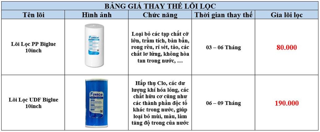 - Thời gian thay thế: 06 – 09 tháng/ lần (Tùy vào lượng nước sử dụng và chất lượng nước đầu vào)