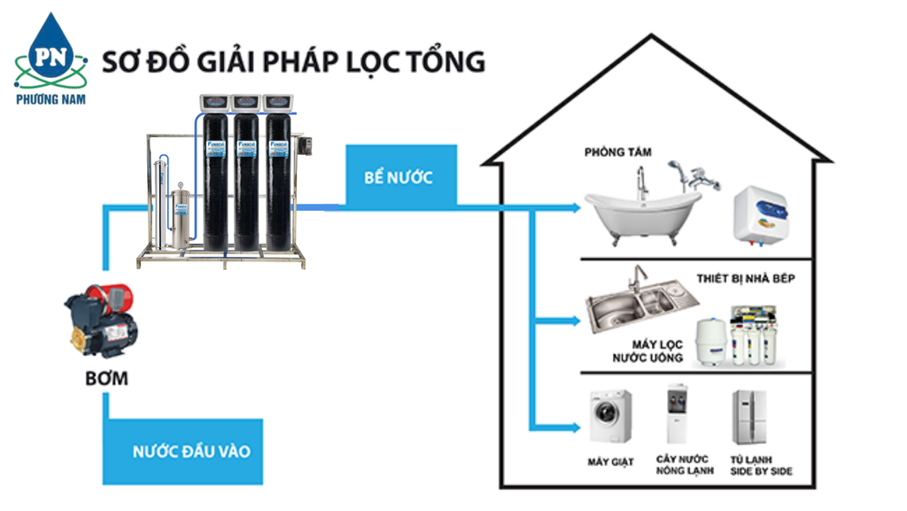 | Nguồn nước đầu vào | Nước máy, nước giếng khoan, nước nhiễm phèn, nhiễm mặn |