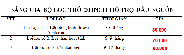 Bộ lõi lọc nước 20 inch gồm 3 lõi lọc: