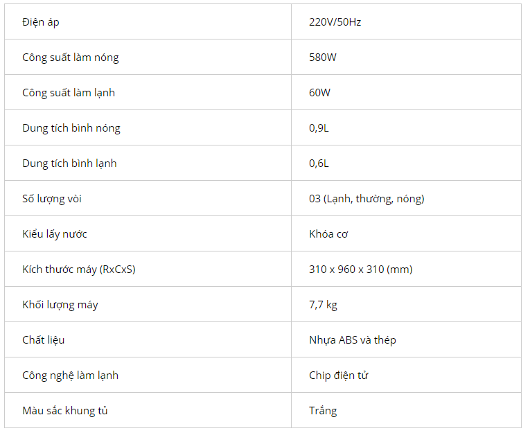 - Làm lạnh tới 10 độ C, Làm nóng tới 95 độ C