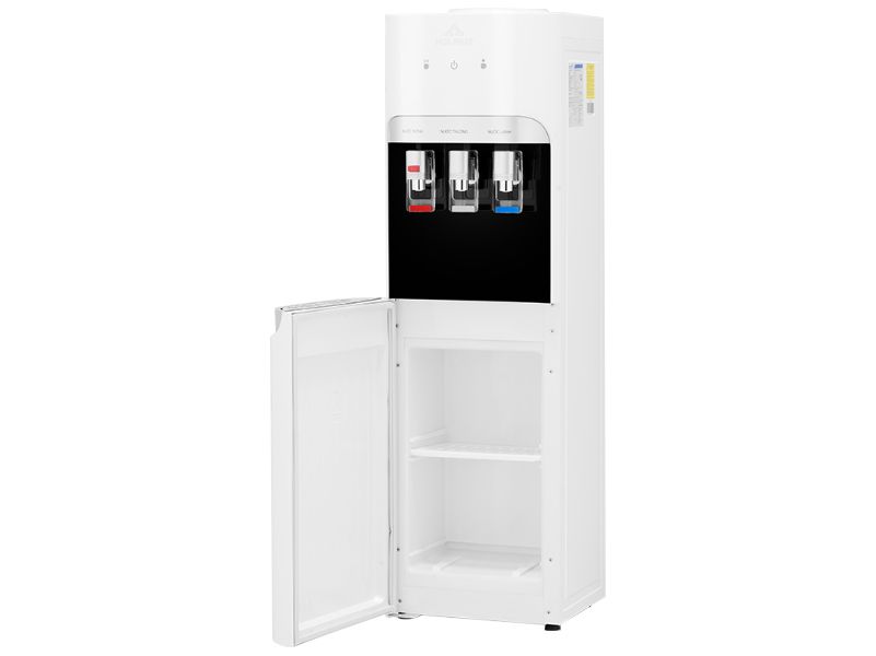 Cây nước nóng lạnh sử dụng bình úp đặt trên đỉnh máy. Vỏ máy làm từ nhựa cao cấp, sang trọng. Kiểu dáng đứng gọn gàng, sử dụng cho gia đình, văn phòng... Bên dưới là khoang bảo quản cốc chén.