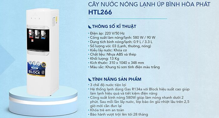Ưu điểm nổi bật của cây nước nóng lạnh úp bình Hòa Phát HTL266