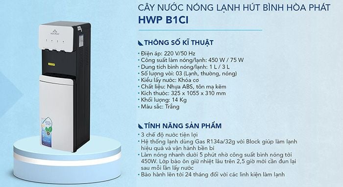 Ưu điểm nổi bật của cây nước nóng lạnh hút bình Hòa Phát HWP B1CI