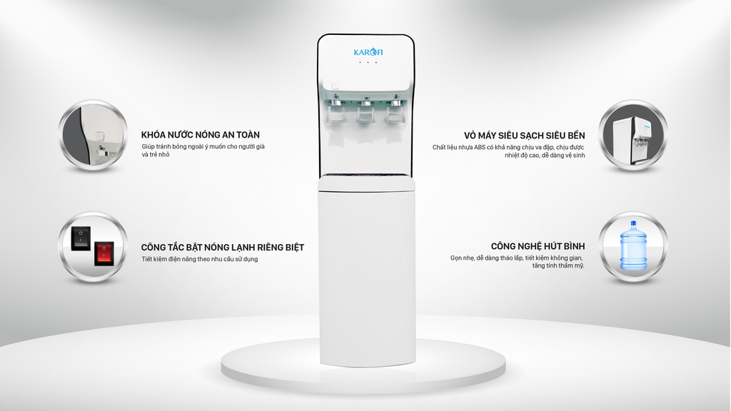 Không chỉ nổi tiếng trong việc sản xuất và bán lẻ máy lọc nước gia đình, Karofi rất lưu tâm đến việc trải nghiệm của người dùng. Cây nước nóng lạnh Karofi cũng là một sản phẩm được rất nhiều người tư dùng quan tâm và chọn mua cho gia đình mình.