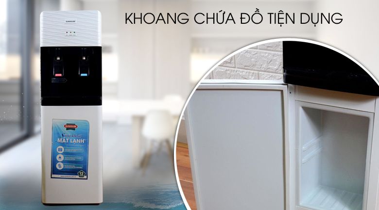 Cây nước lạnh SUNHOUSE SHD9615 có thêm tiện ích ngăn chứa đồ bên dưới giúp người dùng lưu trữ các loại kem, đồ uống, ly…ngay trong máy lạnh.