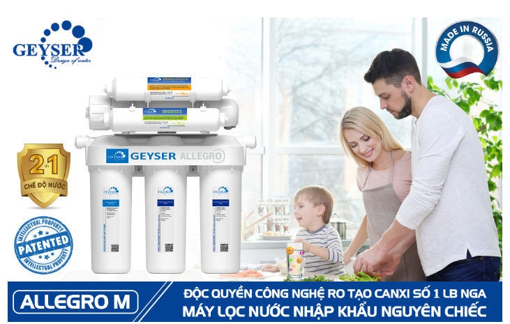 Máy Lọc Nước RO Geyser Allegro nhập khẩu nguyên chiếc từ LB Nga, cam kết chất lượng nguồn nước sau lọc chuẩn tinh khiết 100%. Bạn hiếm có thể mua được dòng máy RO nào nhập khẩu nguyên chiếc tại thị trường Việt có nền tảng trong nghành xử lý nước như Geyser LB Nga. Việc mua Máy Lọc Nước chính hãng giúp bạn yên tâm trong quá trình sử dụng từ chế độ bảo hành từ nhà sản xuất.