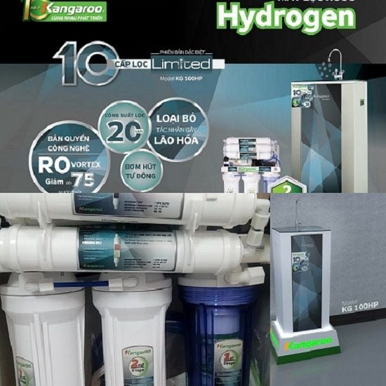 Kangaroo Hydrogen Plus KG100HP kv New 2020 là sản phẩm mới nhất năm 2020 của dòng sản phẩm máy lọc nước hydrogen. Hệ thống lọc lên đến 10 cấp. bổ sung lõi số 10 tự động cân bằng khoáng chất. Thiết bị không bao gồm vỏ tủ, được thiết kế để lắp ngay dưới bồn rửa bát.