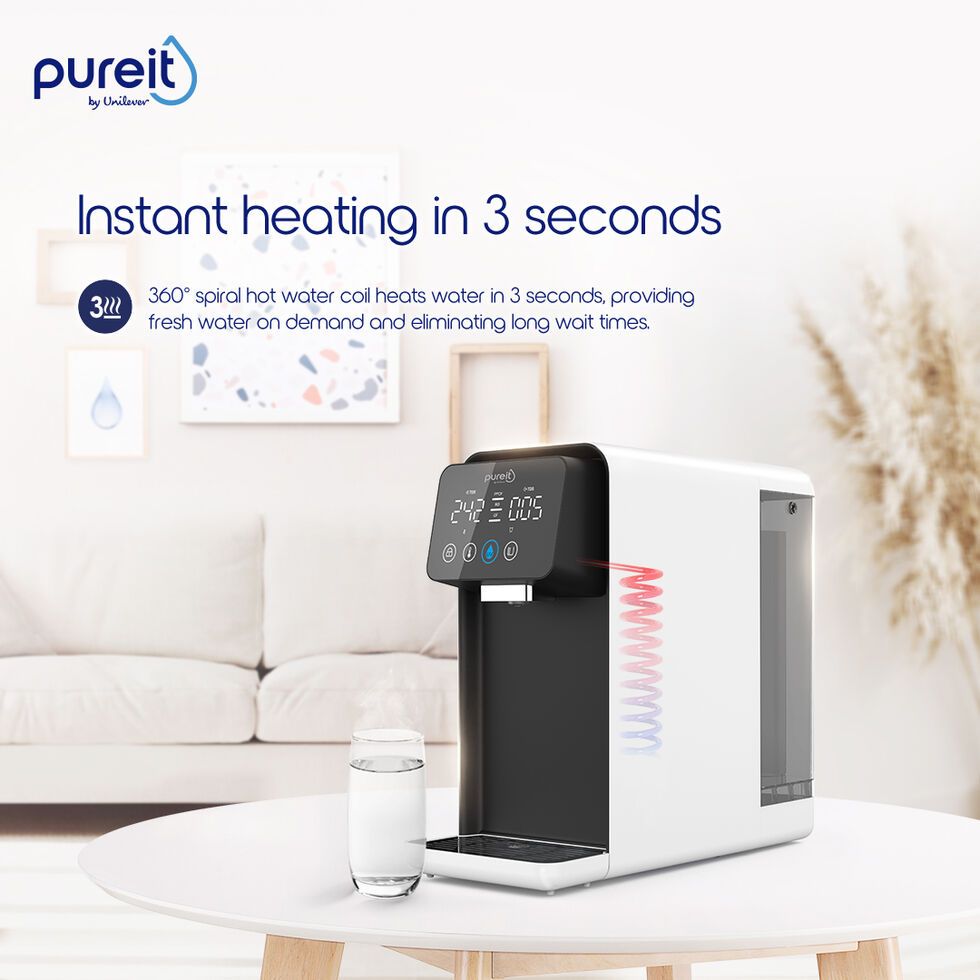 Không giống như ấm đun nước chỉ cung cấp nước đun sôi, Pureit Lavita có thể kiểm soát nhiệt độ chính xác và ổn định để sử dụng ngay với nước nóng (98°C), nước ấm (45°C) và nước theo nhiệt độ môi trường xung quanh (nhiệt độ phòng) cho nhiều mục đích sử dụng.