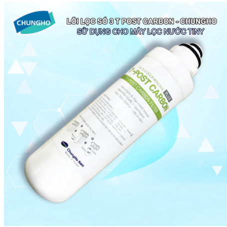 LÕI LỌC SỐ 3 T POST CARBON: Sử dụng than hoạt tính cao cấp Calgon-Mỹ hấp thụ và loại bỏ mùi vị lạ trong nước giúp đem lại hương vị tươi mát, tinh khiết. (Thời gian thay thế lõi lọc sau 18-24 tháng ) Lắp đặt sau lõi lọc T-RO Lắp cho máy lọc nước Chungho: TINY 300 CHP-2321D/ TINY 500 CHP-3931D UV/ TINY 900 ICE CHP-5321D UV