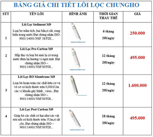 | Lõi lọc nước | Lõi lọc nước ChungHo |