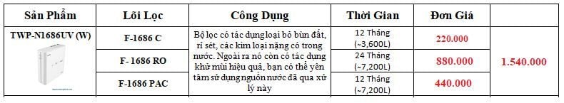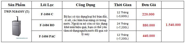 Lõi lọc Post C cho model TWP-N1686UV, TWP-N1843SV.