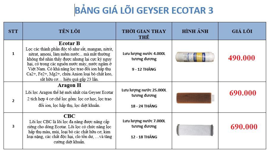 Thời gian thay thế: 7000l nước hoặc 12 tháng phụ thuộc chất lượng nước đầu vào và mức độ sử dụng.