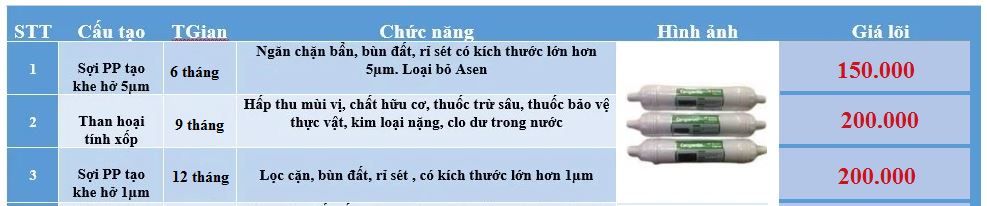 Công suất lọc: 10.000 lít/h Thời gian thay thế: 3 – 6 tháng.