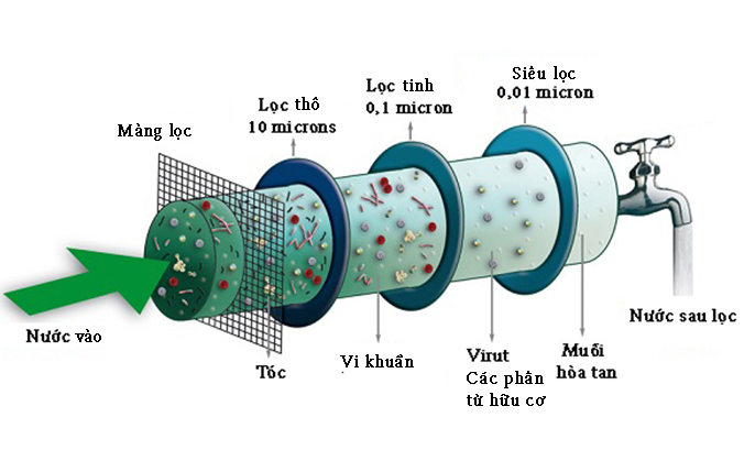 Màng UF tạo nên một rào cản chắc chắn ngăn cản các vi sinh vật, bào tử và loại bỏ màu, chất hữu cơ (trong nguồn nước tự nhiên thường xuất hiện các chất tiết ra từ vỏ cây, các chất mùn, bùn, gỉ sắt các độc tố và vi khuẩn có hại…vv).