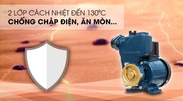 Máy bơm nước Panasonic sẽ tự ngắt điện khi nhận thấy nhiệt độ bơm quá cao (trên 130⁰C ). Hơn nữa, lõi quay motor bằng đồng đảm bảo máy hoạt động liên tục 8000 giờ không ngừng nghỉ.