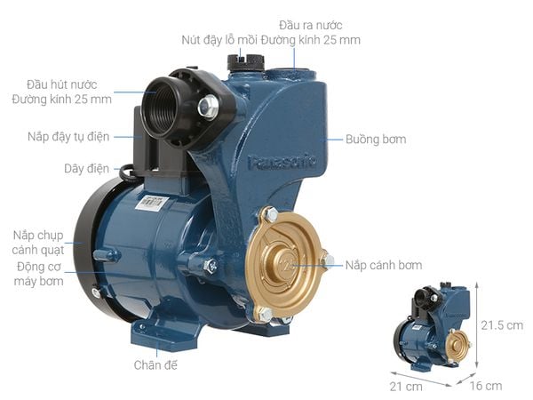 Có khả năng hút nước từ nguồn nước sâu và đẩy lên cao với tổng chiều cao hút đẩy đến 30 mét, máy bơm nước đẩy cao Panasonic này phù hợp dùng bơm nước lên cho nhà cao khoảng 1 - 2 tầng.