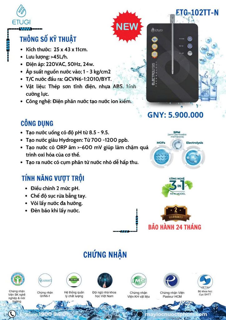 Máy Chuyển Đổi Điện Phân Ion Kiềm Etugi – ETG 102TT-N