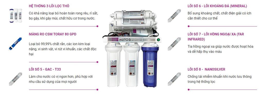 Máy Lọc Nước Mutosi MP-280M với 8 cấp lọc tiên tiến