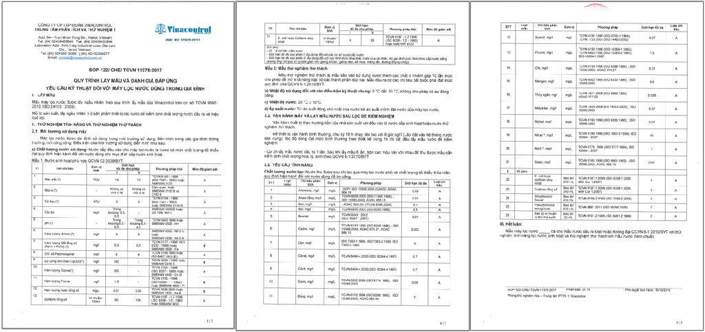 Nguồn nước sau lọc đạt Quy chuẩn Quốc gia nước về nước uống trực tiếp QCVN 6-1:2010/BYT được chứng nhận bởi VINACONTROL , đảm bảo an toàn tuyệt đối cho sức khỏe người dùng khi uống trực tiếp.
