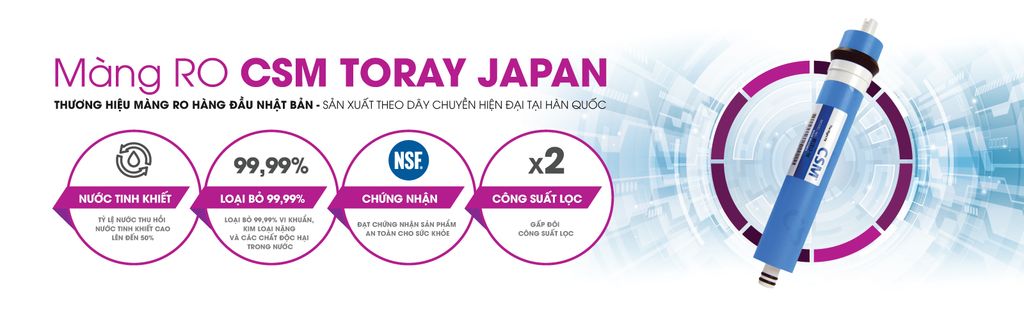 Sử dụng Màng lọc CSM – TORAY sản phẩm của tập đoàn Toray – Nhật Bản.