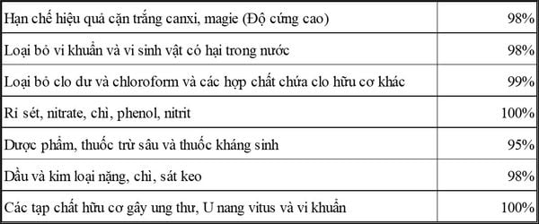 | Lọc nước | Uống trực tiếp, nước ăn uống |