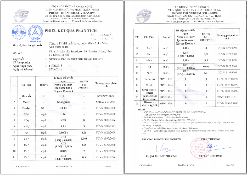 – Loại bỏ 100% các vi khuẩn, vi rút, Ecoli.