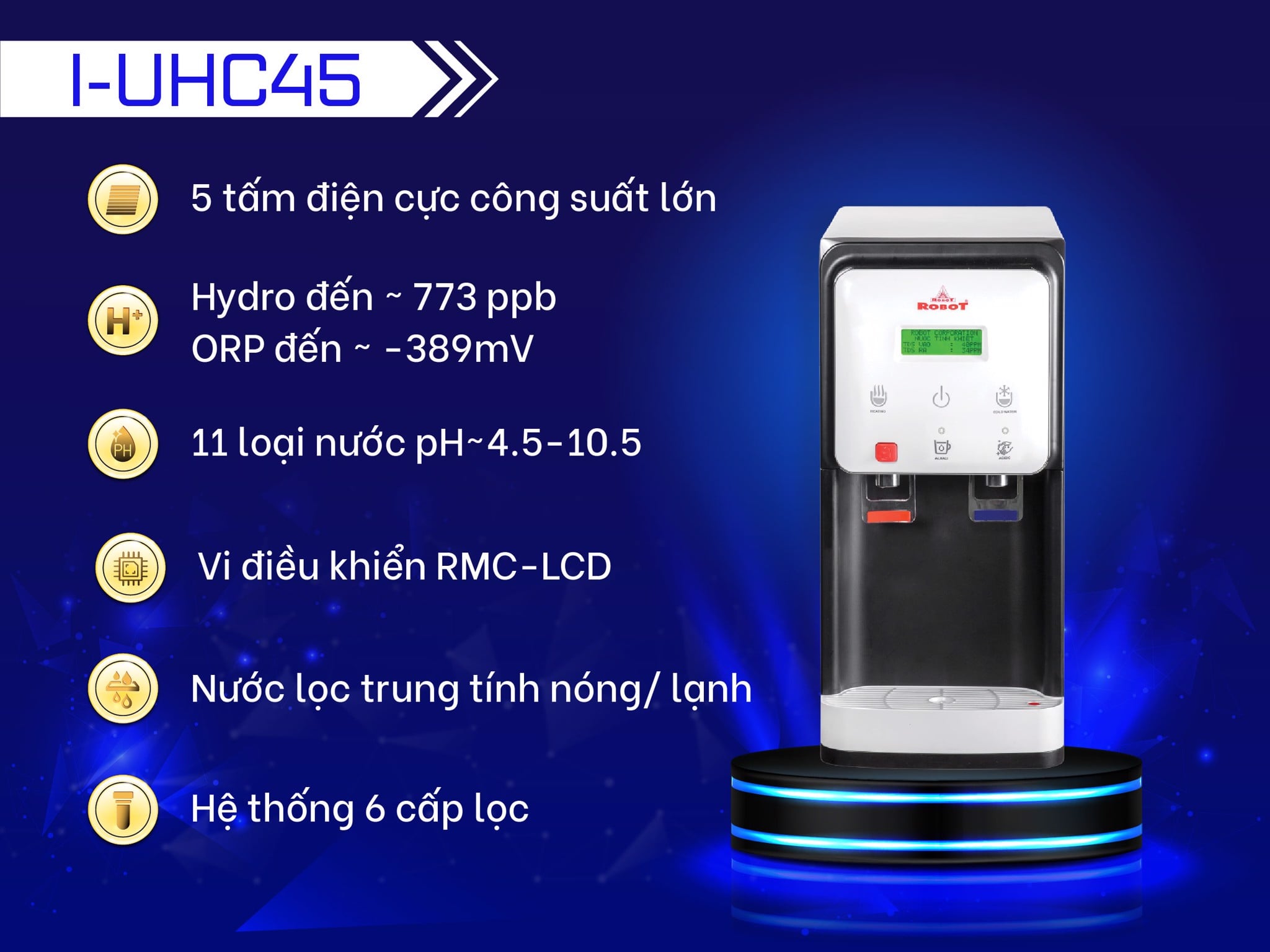 I-UHC45 sử dụng công nghệ RMC-LCD độc quyền của ROBOT, giúp kiểm soát chất lượng nước hoàn hảo