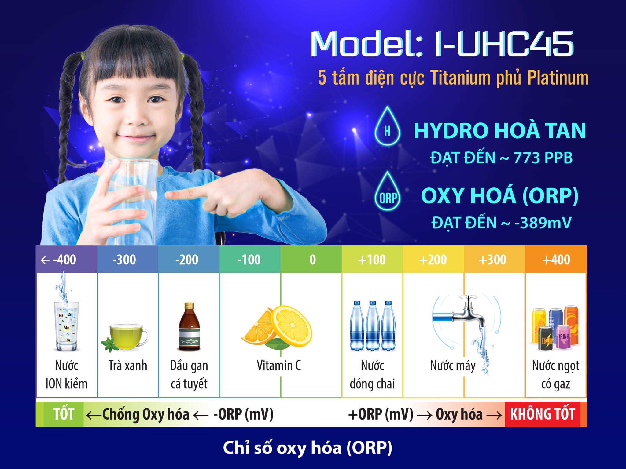 3.2 Nồng độ Hydro hòa tan cao, Mức độ Oxy hóa (ORP) thấp tốt cho sức khỏe
