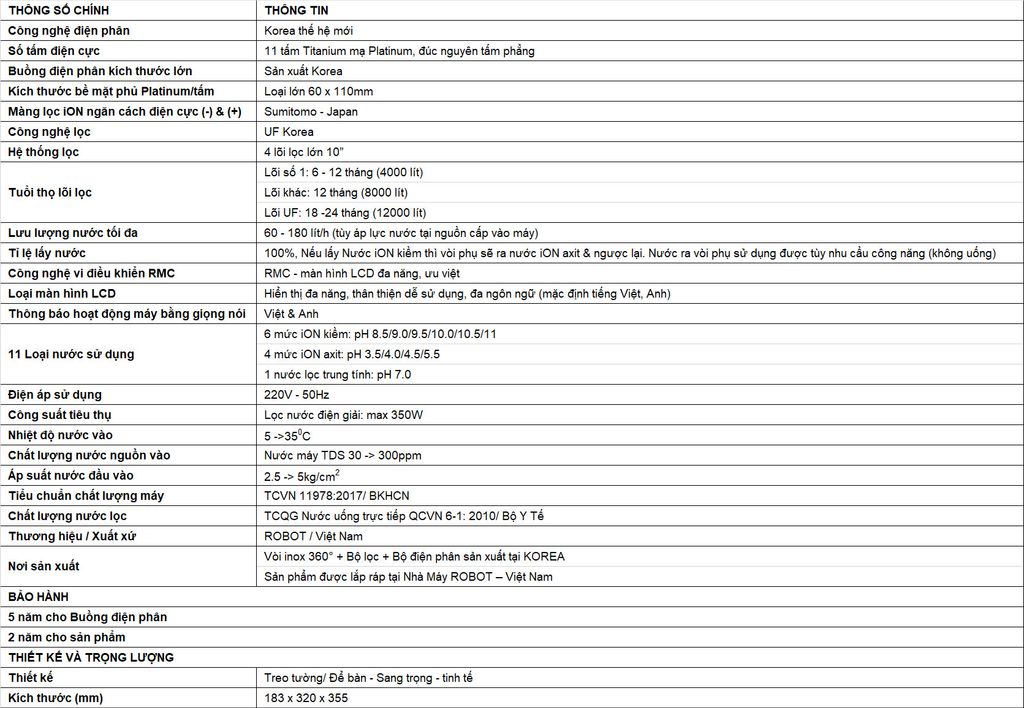- Với mong muốn nhiều gia đình Việt có thể sử dụng nước điện giải iON kiềm với chi phí hợp lý để bảo vệ sức khỏe, sắc đẹp & nâng cao chất lượng cuộc sống, ROBOT mang đến sản phẩm “Chất lượng Quốc tế - Giá thành Việt Nam”, phù hợp với mức sống của nhiều người. Tiết kiệm cho người tiêu dùng đến 1 nửa chí phí so với máy nhập khẩu, nhưng sở hữu nhiều ưu điểm, tính năng vượt trội, chất lượng cao.