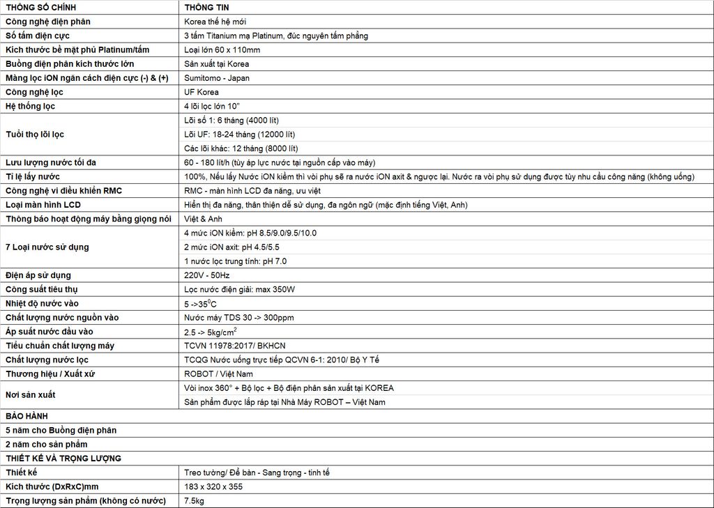 *Thương hiệu / Xuất xứ: ROBOT / Việt Nam