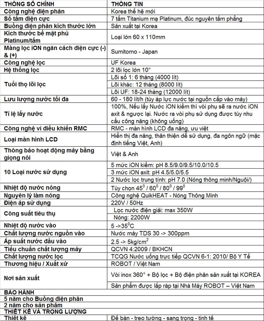 - Với mong muốn nhiều gia đình Việt có thể sử dụng nước điện giải iON kiềm với chi phí hợp lý để bảo vệ sức khỏe, sắc đẹp & nâng cao chất lượng cuộc sống, ROBOT mang đến sản phẩm “Chất lượng Quốc tế - Giá thành Việt Nam”, phù hợp với mức sống của nhiều người. Tiết kiệm cho người tiêu dùng đến 1 nửa chí phí so với máy nhập khẩu, nhưng sở hữu nhiều ưu điểm, tính năng vượt trội, chất lượng cao.