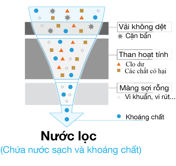 – Công nghệ màng lọc sợi rỗng tiên tiến có khả năng lọc loại bỏ 13 tạp chất độc hại trong nước.