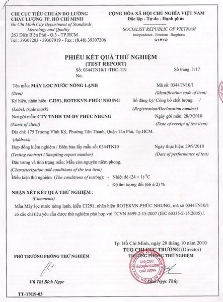 Sản phẩm được cấp chứng nhận tiêu chuẩn bởi CHI CỤC TIÊU CHUẨN ĐO LƯỜNG CHẤT LƯỢNG TP.HCM