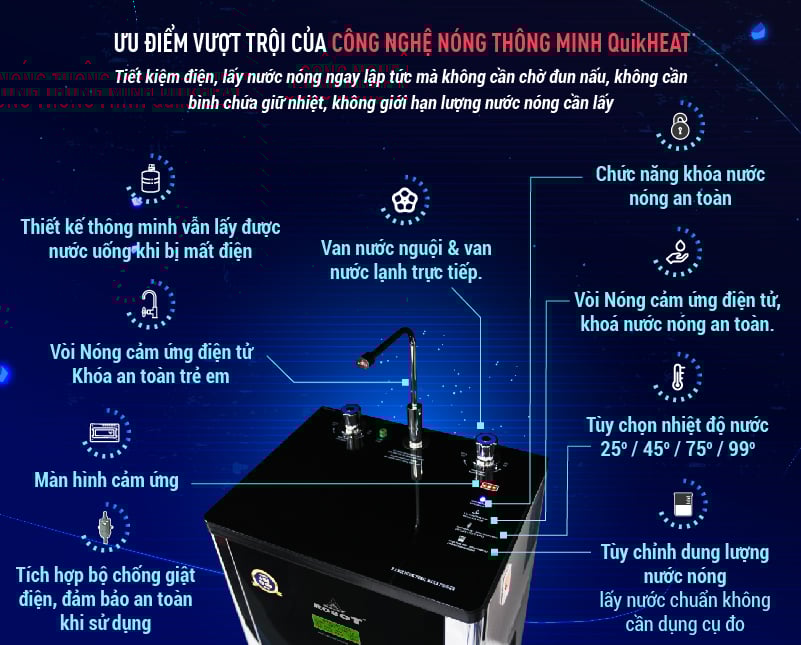 Máy lọc nước 3 chức năng Nóng Nguội Lạnh hoàn hảo với công nghệ nóng thông minh QuikHEAT