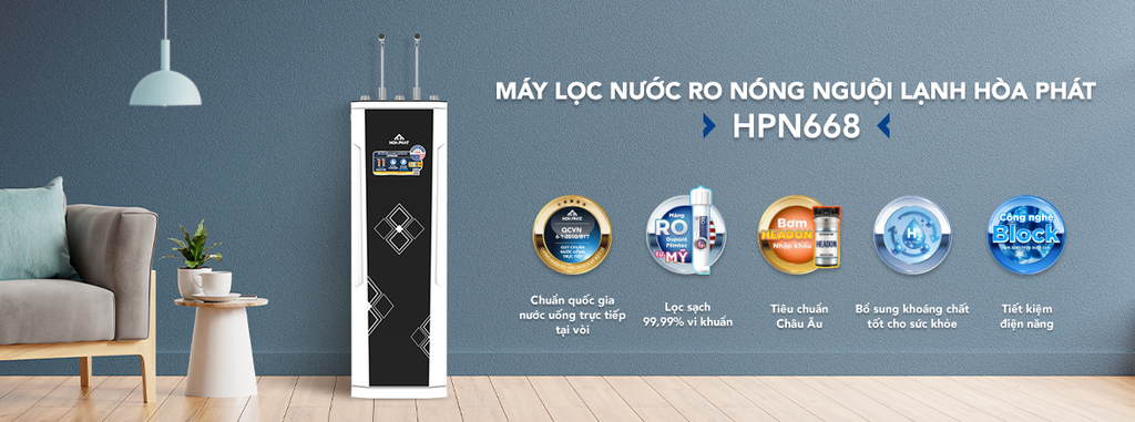 MÁY LỌC NƯỚC RO HÒA PHÁT NÓNG LẠNH NGUỘI HPN668