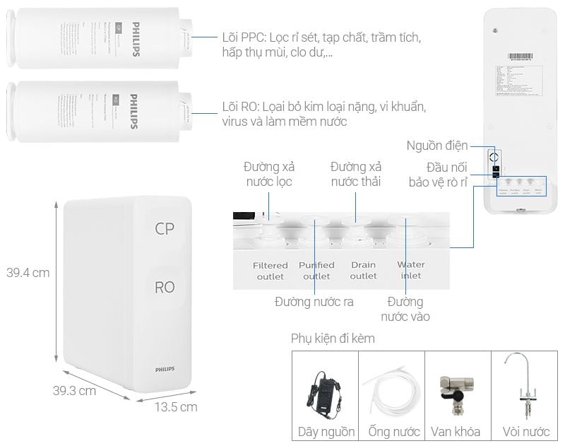 Máy Lọc Nước Philips có cảm biến rò rỉ, tự động ngắt cấp khi phát hiện rò rỉ