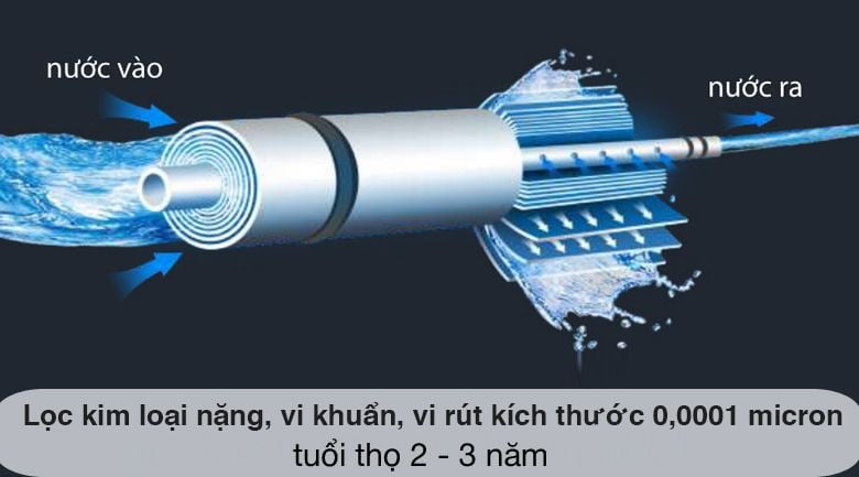 - Màng RO Nhật Bản: lọc chính xác tới 0,0001 micron các kim loại nặng, vi khuẩn, vi rút, và đặc biệt làm mềm nước. Thay sau 36 tháng sử dụng.