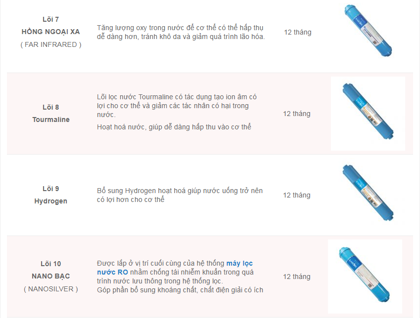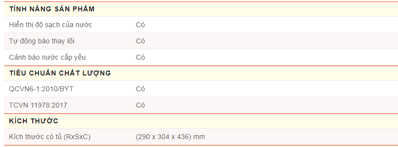 | Số cấp lọc | 10 cấp (3 cốc lọc thô, màng RO, 6 cấp lọc chức năng) |