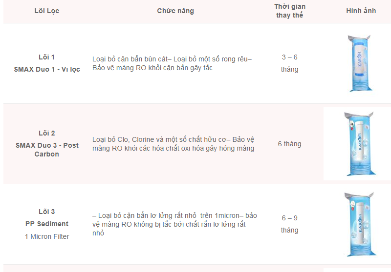 Chi tiết hệ thống lõi lọc máy lọc nước KAQ-U95