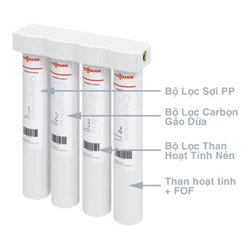 | Số cấp lọc | 4 (PP, than hoạt tính gáo dừa, than hoạt tính dạng nén, than hoạt tính chống đóng cặn) |