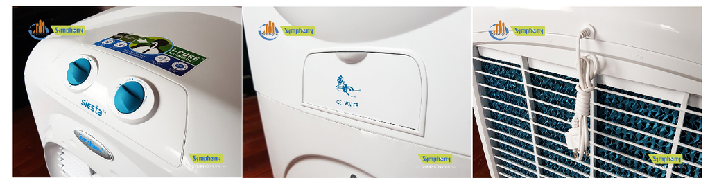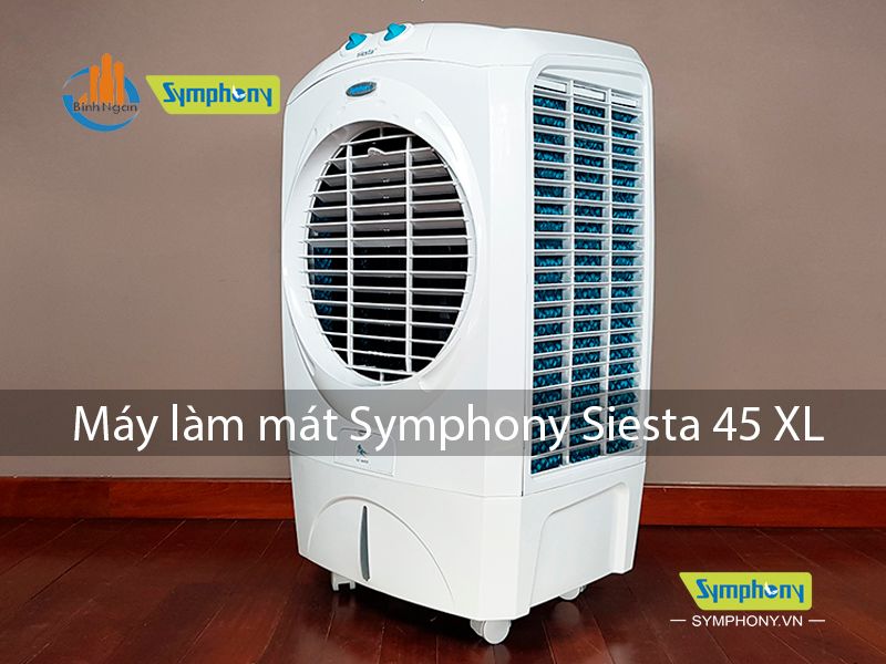 Symphony Siesta 45XL có dung tích bình chứa 45 lít cho phép quạt sử dụng được trong thời gian dài vì lượng nước tiêu thụ chỉ với 1 - 3 lít/giờ, lưu lượng gió tạo ra là 3500m3/giờ.